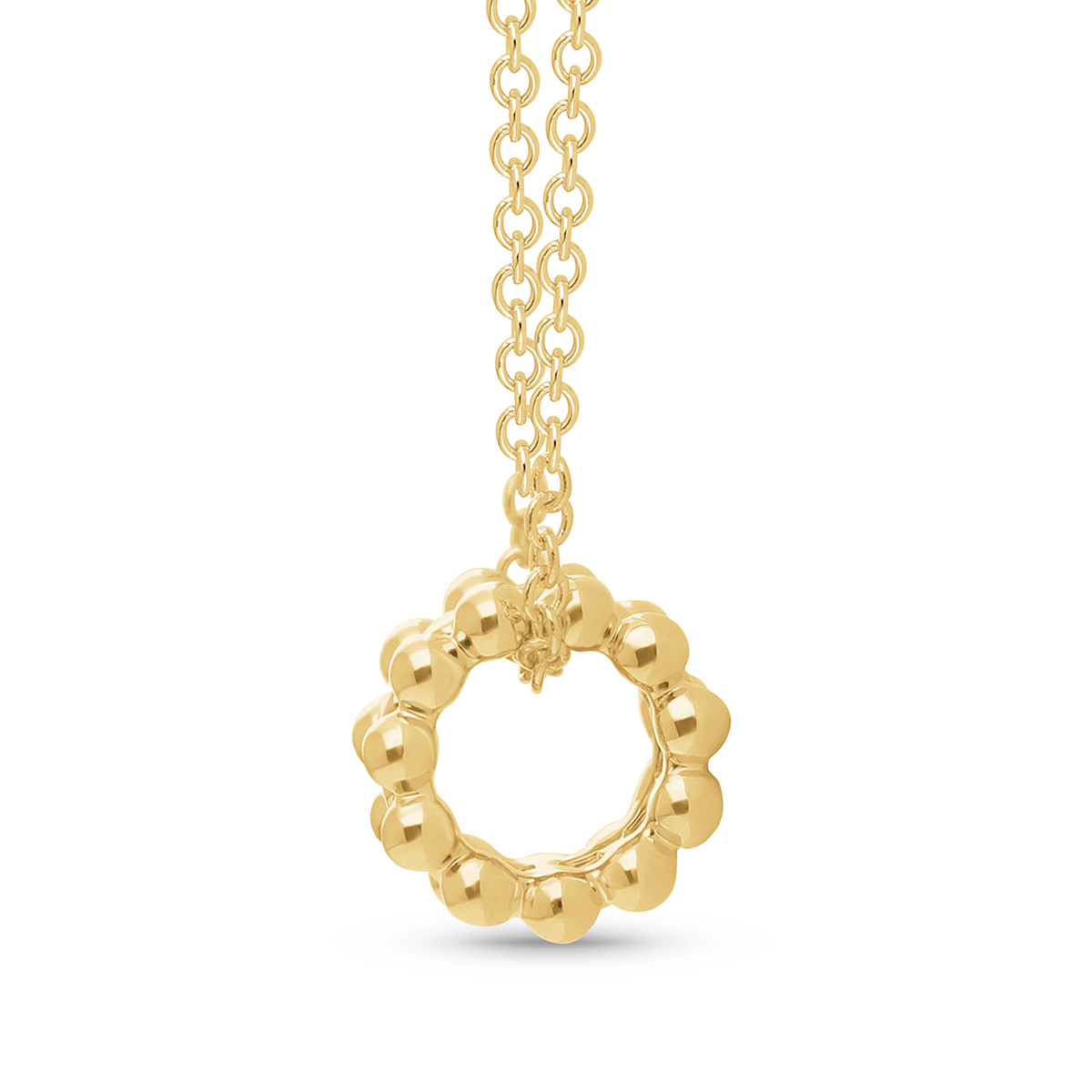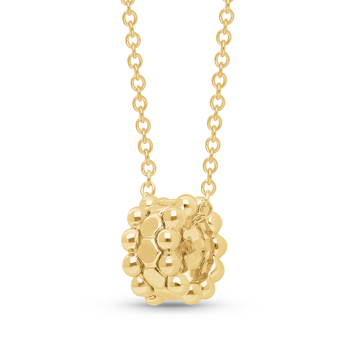 Crafted in gleaming 14k gold, this sleek roller pendant with beaded edges embodies everlasting style