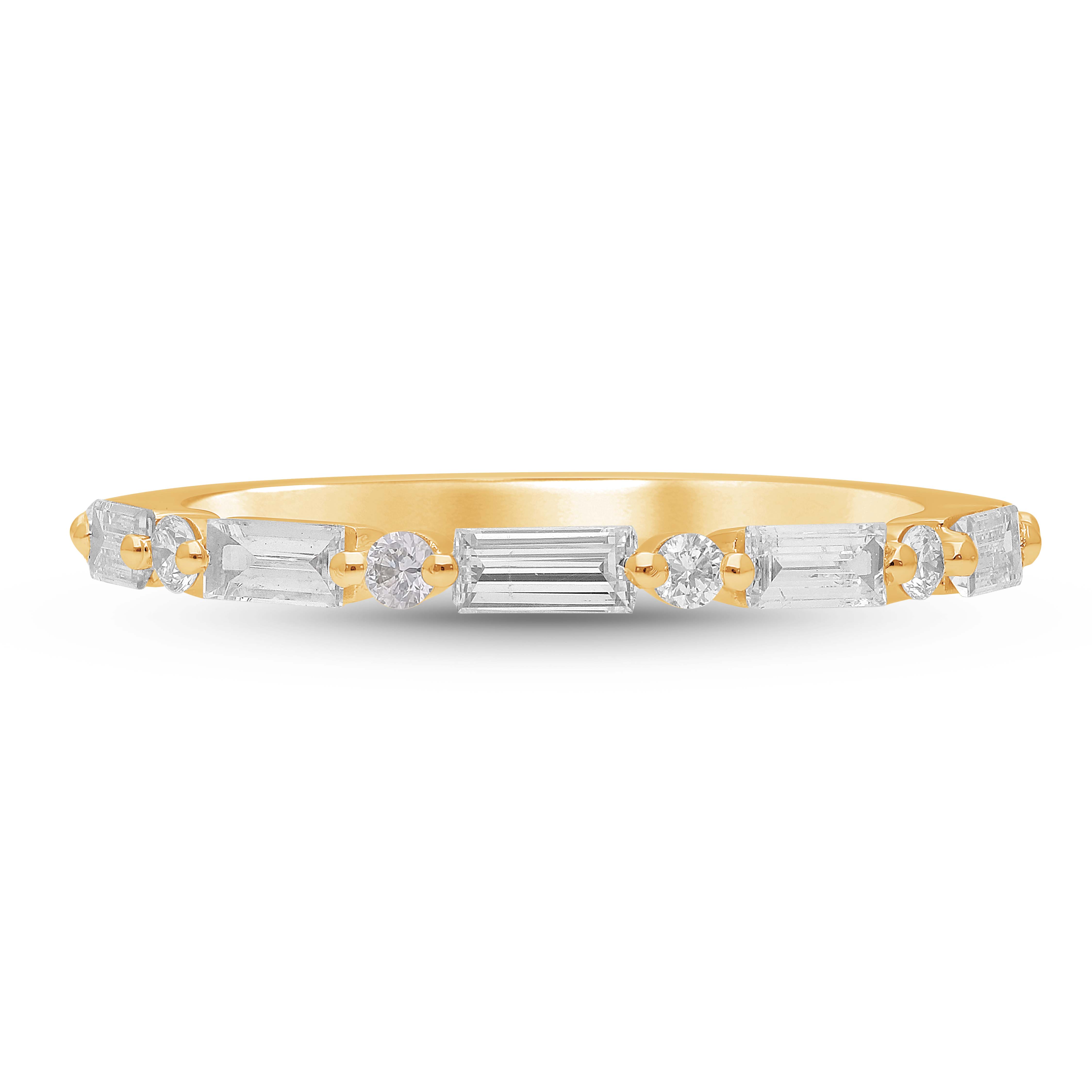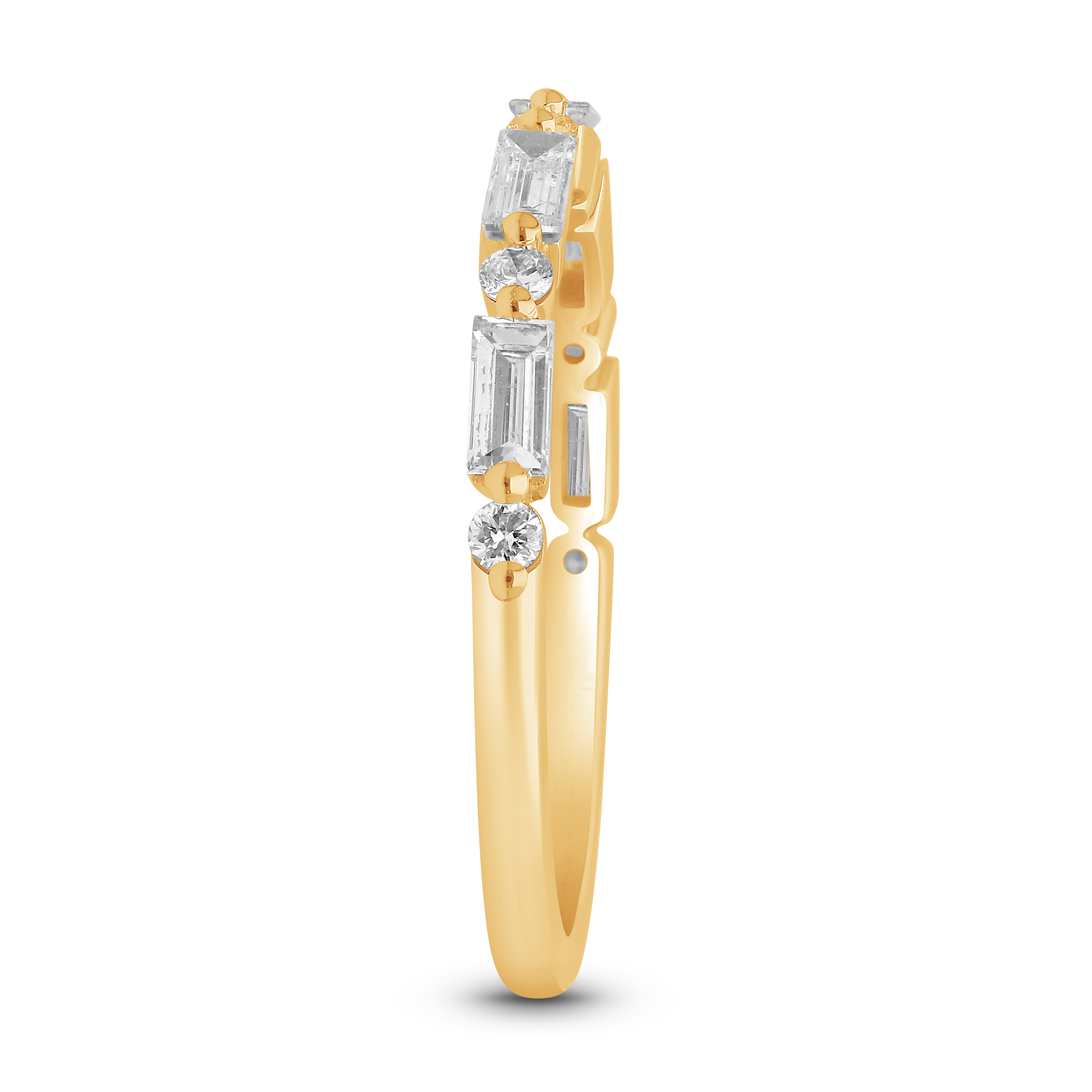 A celestial stream of light, where tailored baguette cuts meet the soft glow of brilliant-cut diamonds. This modern band captures the ebb and flow of moonlight, symbolizing perpetual elegance and alternating rhythm.