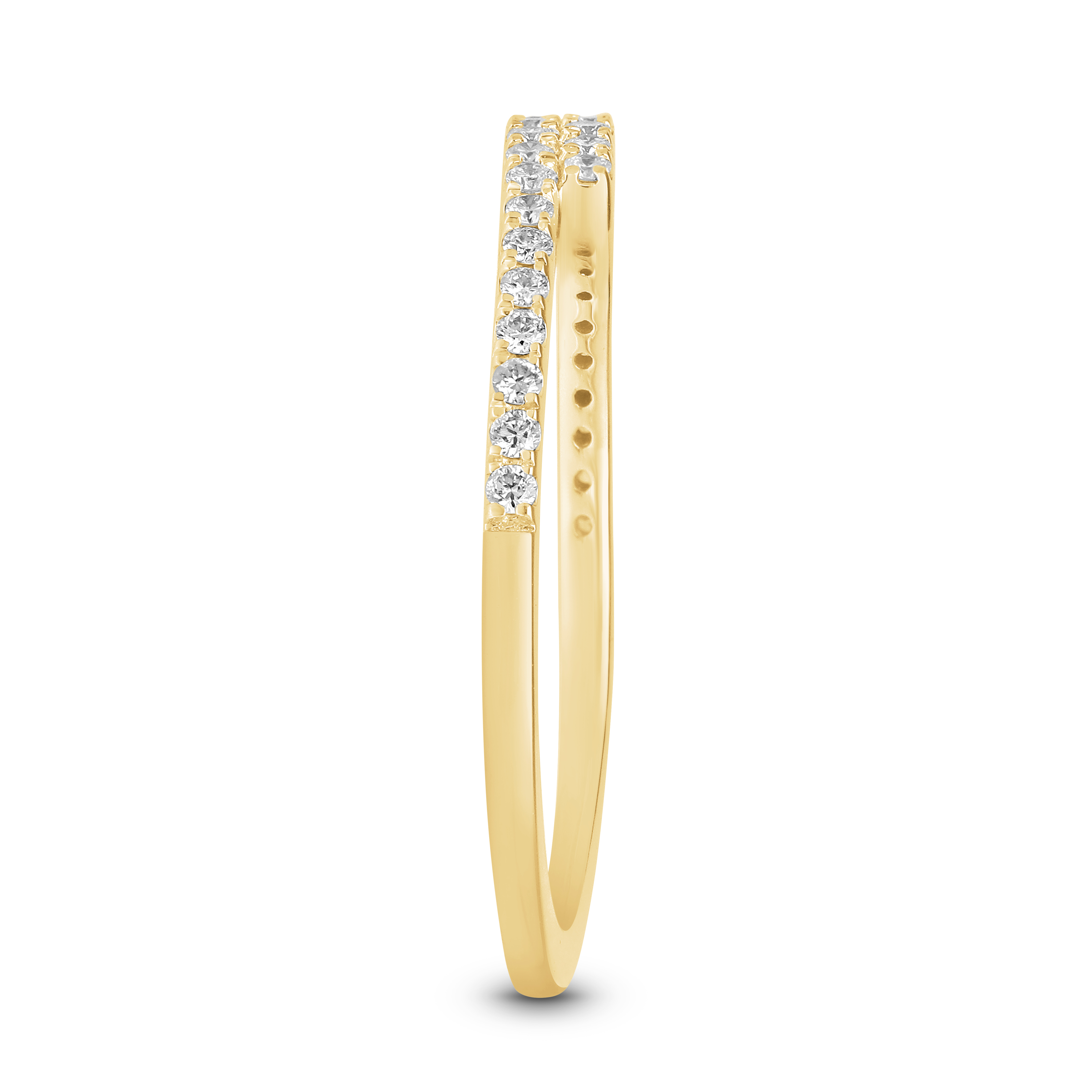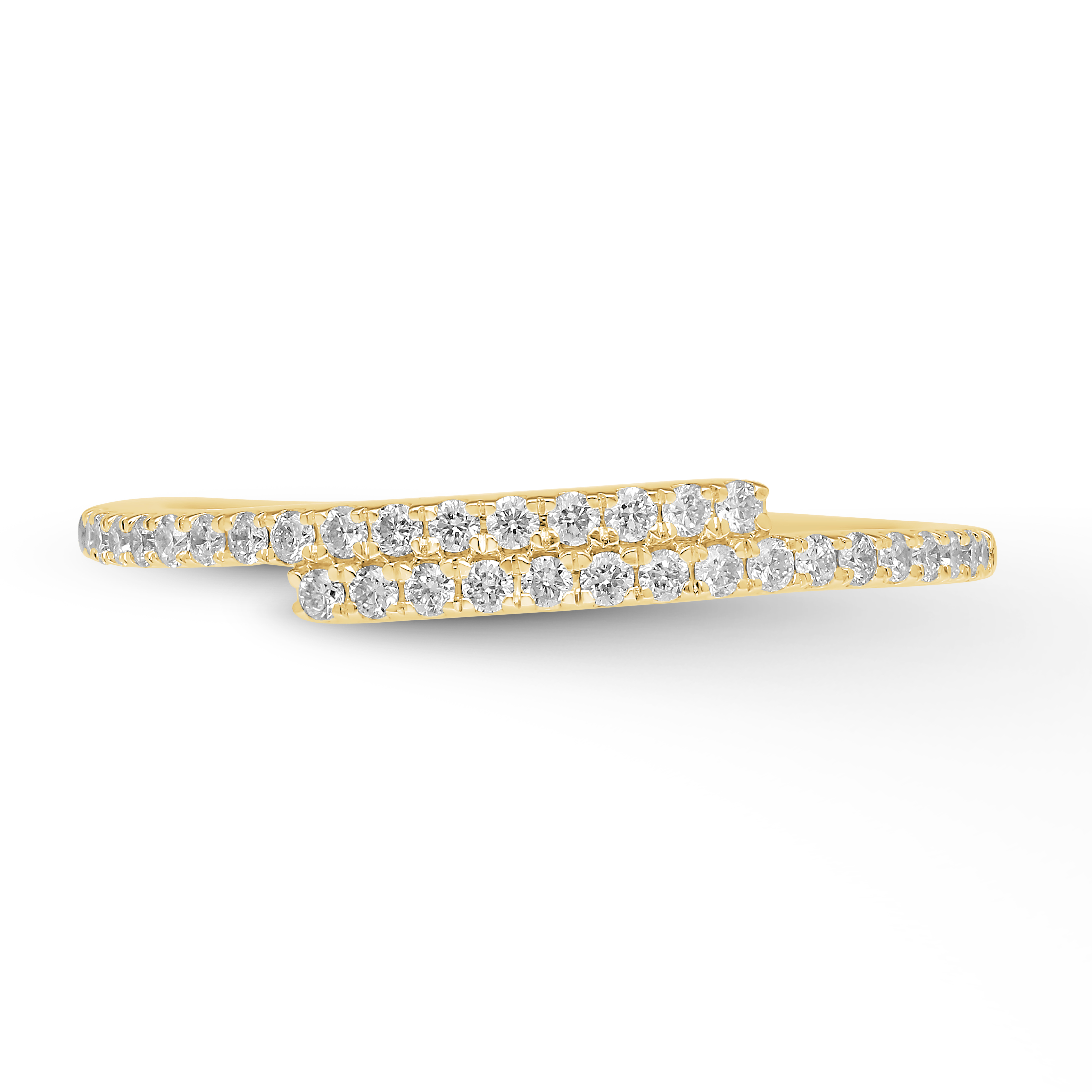 This dynamic wrap ring features two parallel bands that gracefully cross over, both brilliantly lined with continuous pave diamonds. A contemporary design offering maximal, seamless sparkle and chic movement.