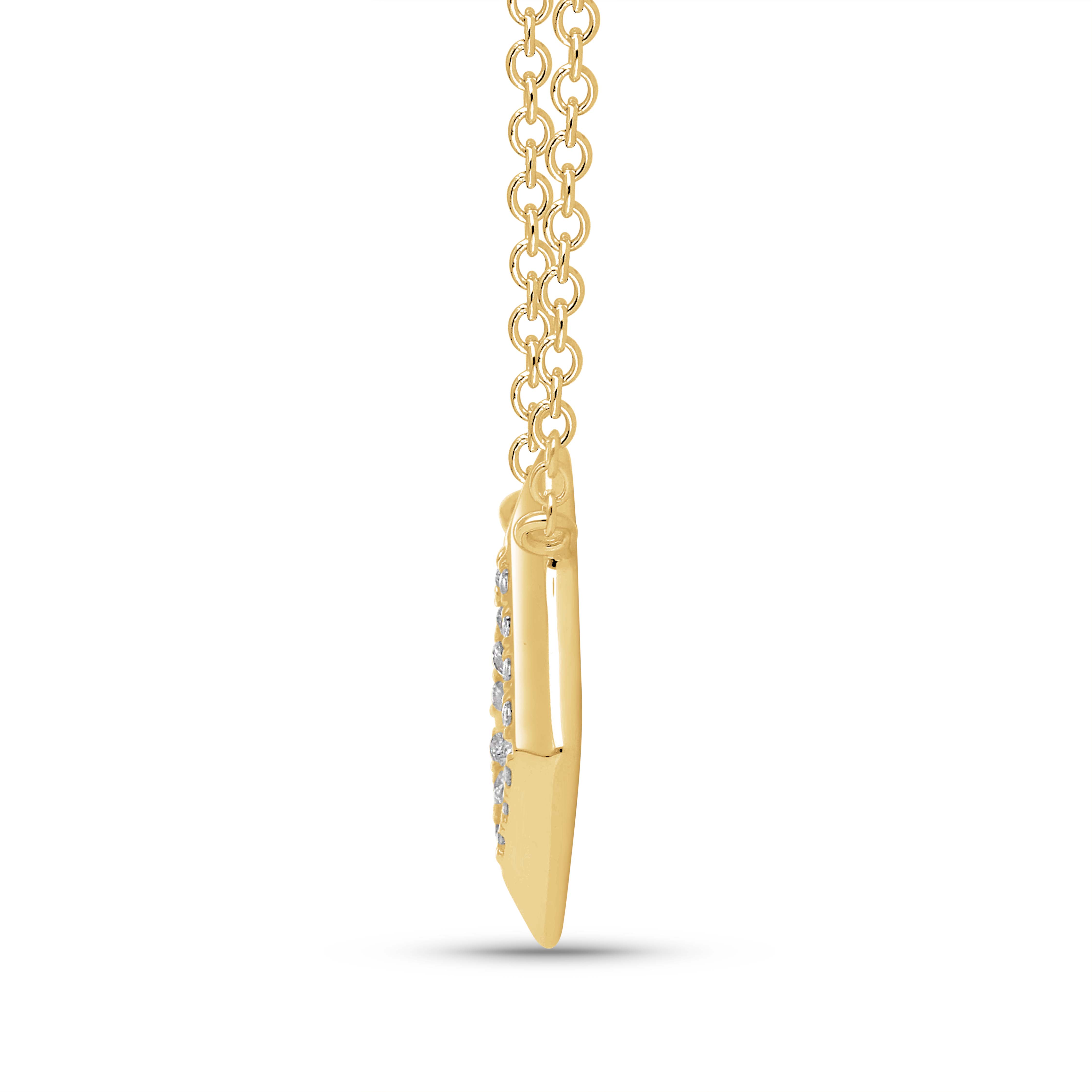 Inspired by contemporary artistry, this diamond-shaped pendant gleams with precision and poise. Its shimmering diamonds reflect confidence and grace, making it the perfect accent for those who shine effortlessly in every moment.