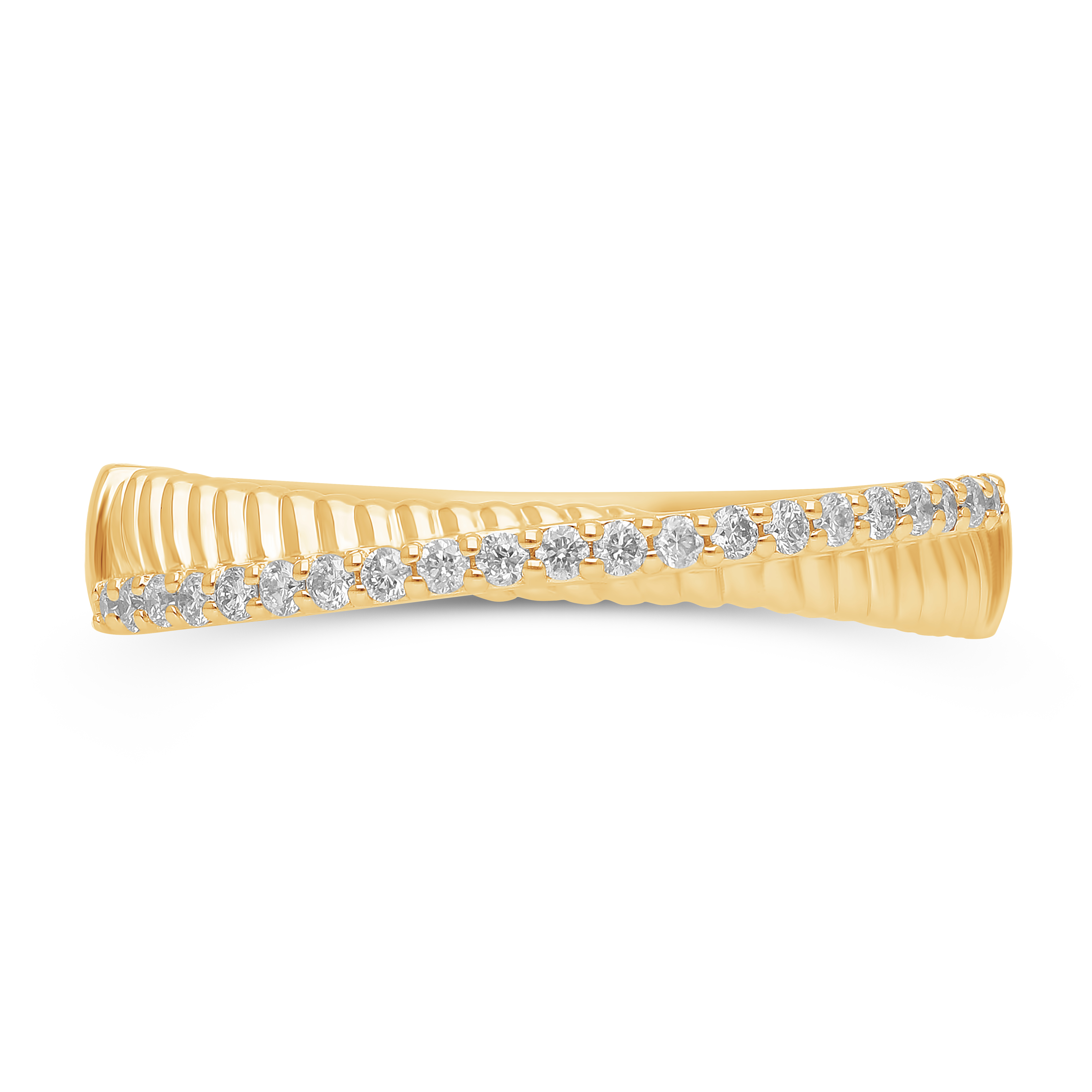 Effortless, contemporary elegance. This delicate band features a continuous line of bezel-set diamonds that alternate slightly in size, creating a unique, charming stitching effect perfect for stacking.
