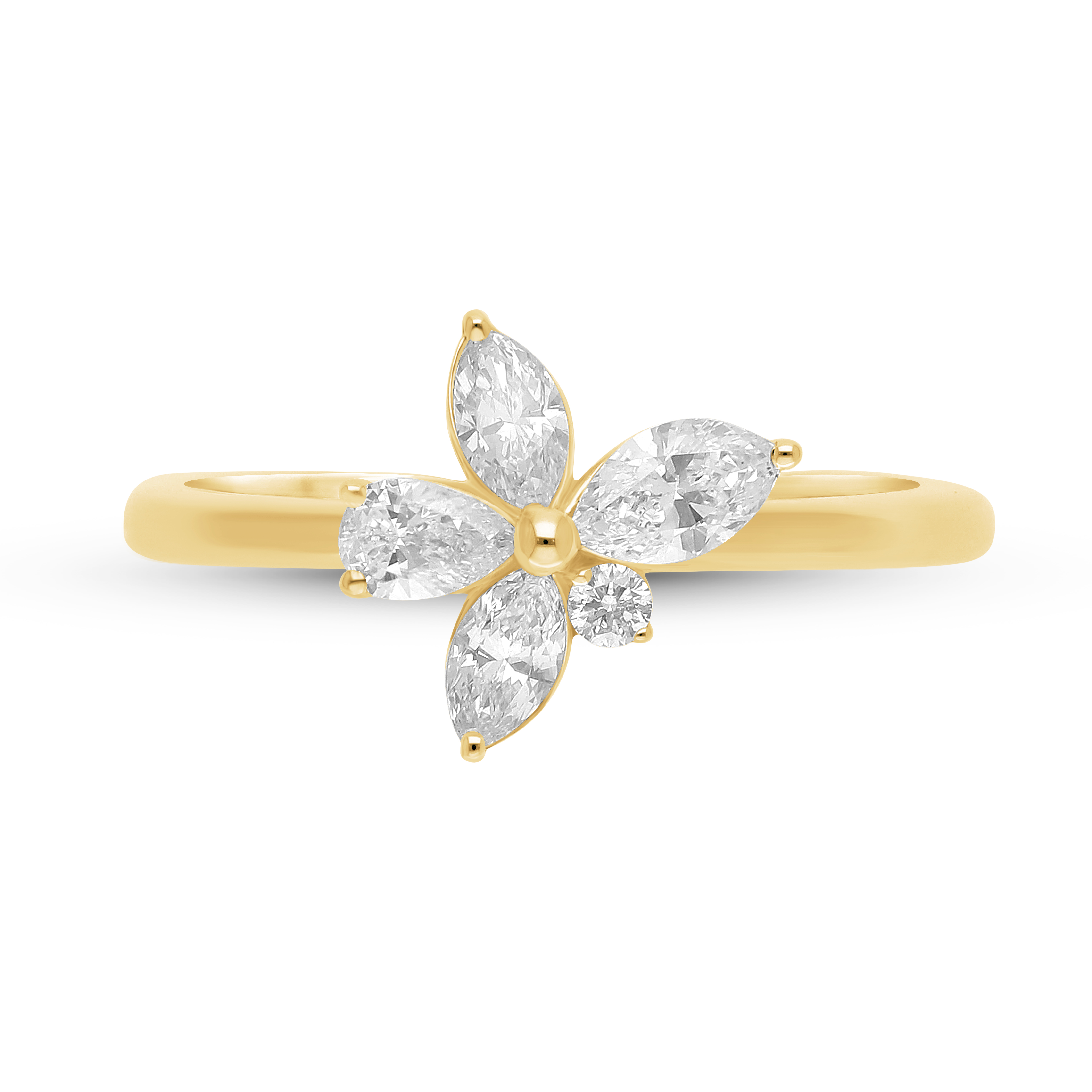 Crafted in 14K gold, this open ring features two brilliant, mirror-image marquise diamond clusters, each radiating pure, focused light. The dual sparkle symbolizes two separate lights that beautifully converge into one constellation of commitment, offering a bold and luminous statement.