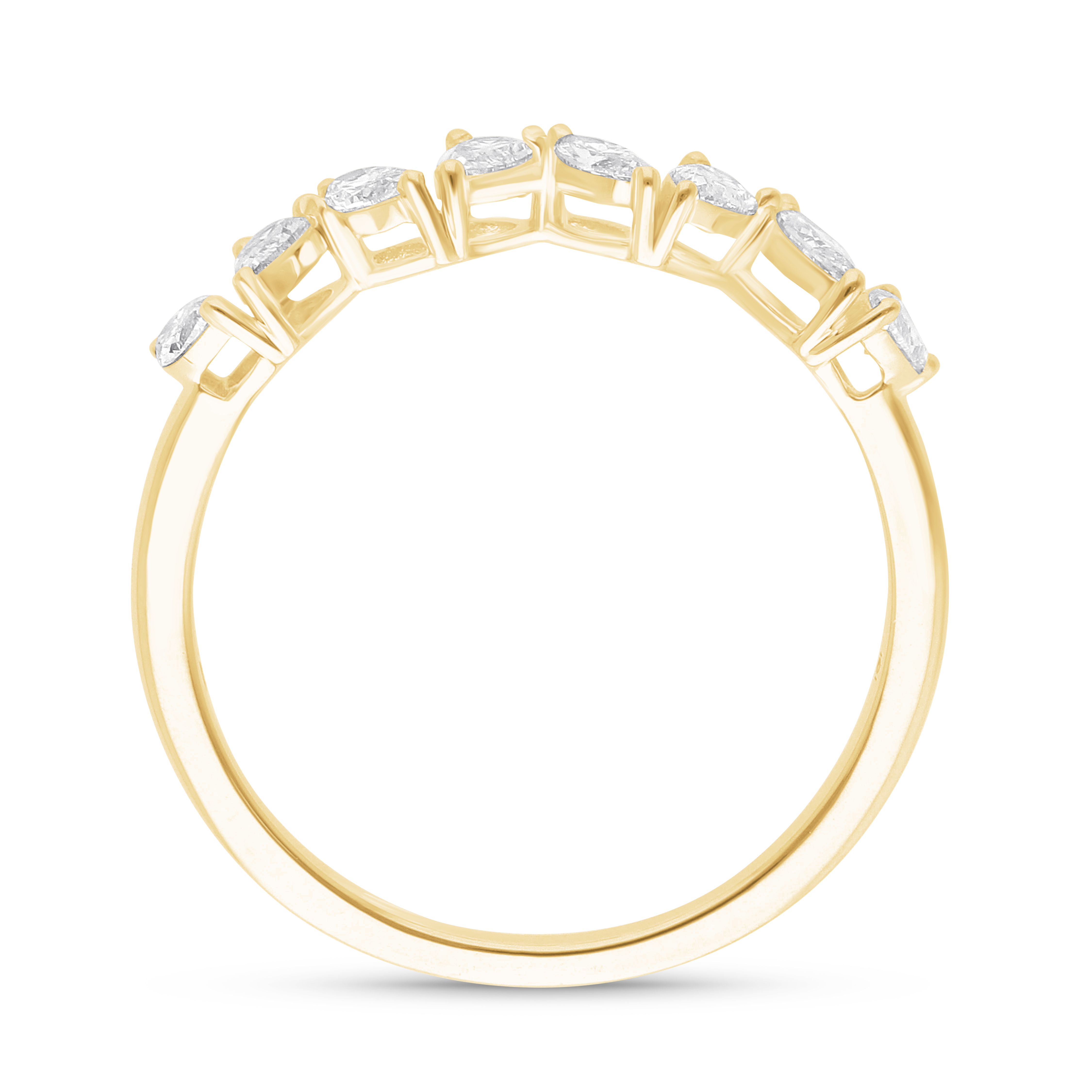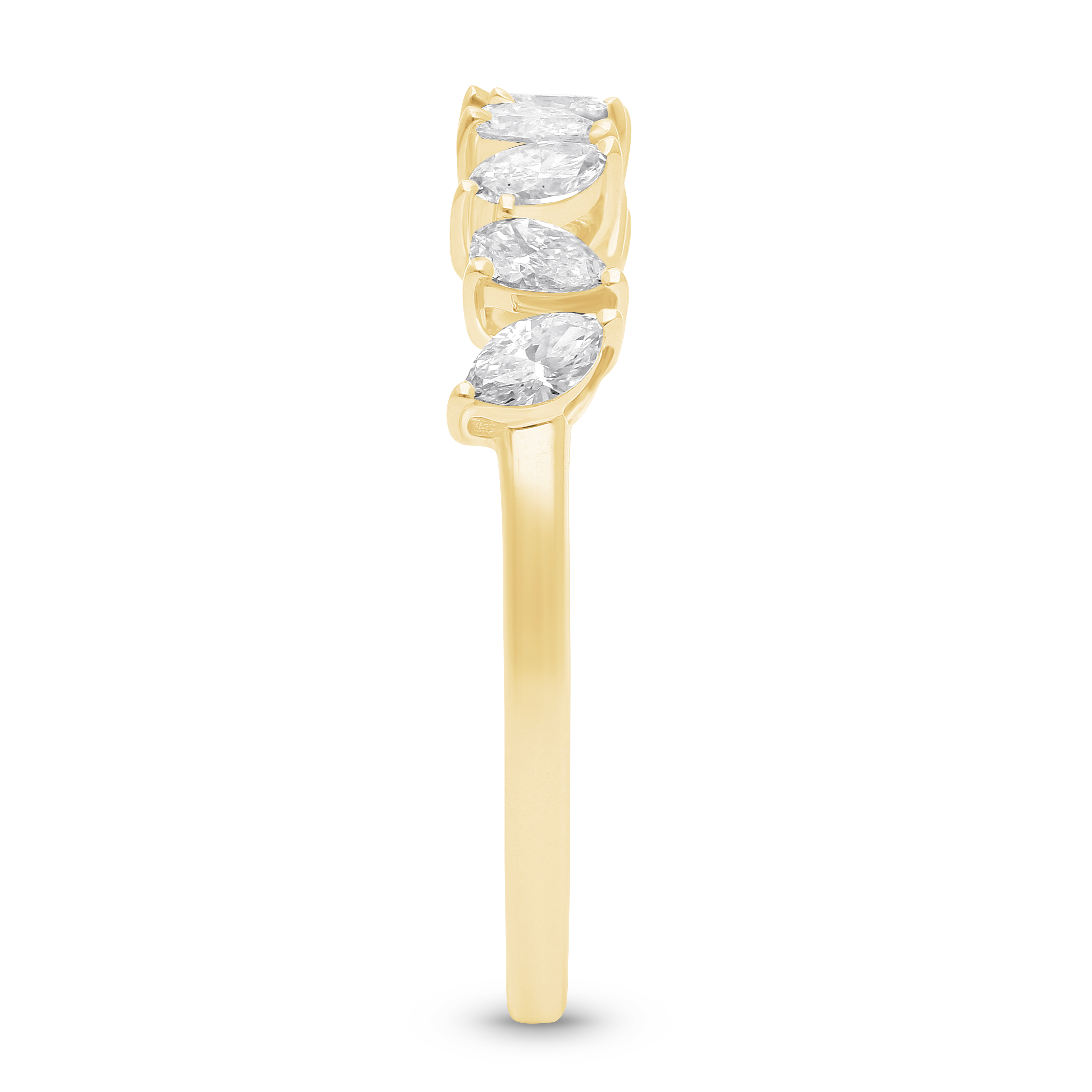 An organic and graceful band where the pointed tips of each pear-cut diamond create a continuous, woven wreath of light. Set in polished gold, the alternating shapes evoke soft willow leaves, symbolizing enduring strength and flexible grace in a uniquely feminine, timeless design.