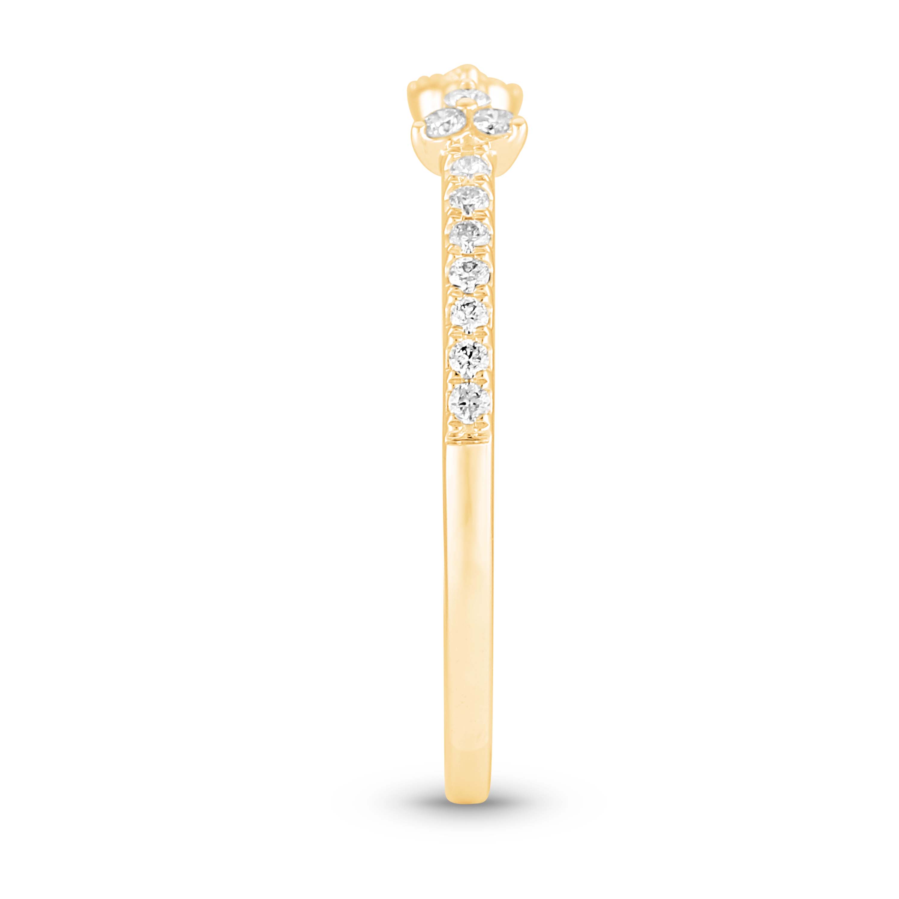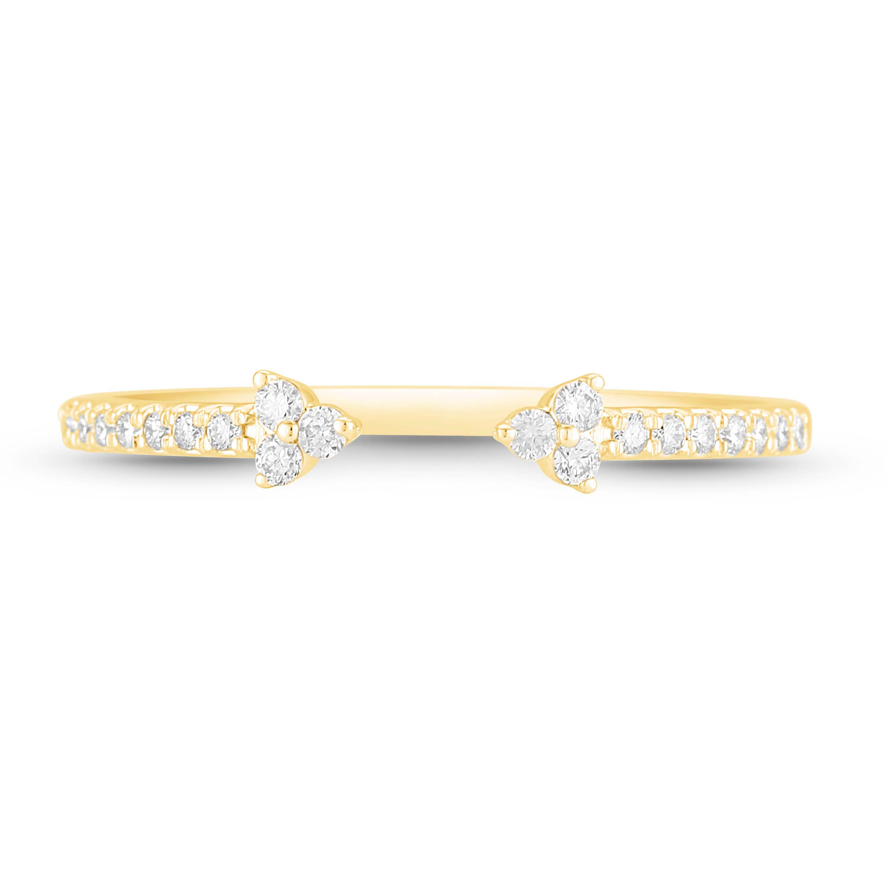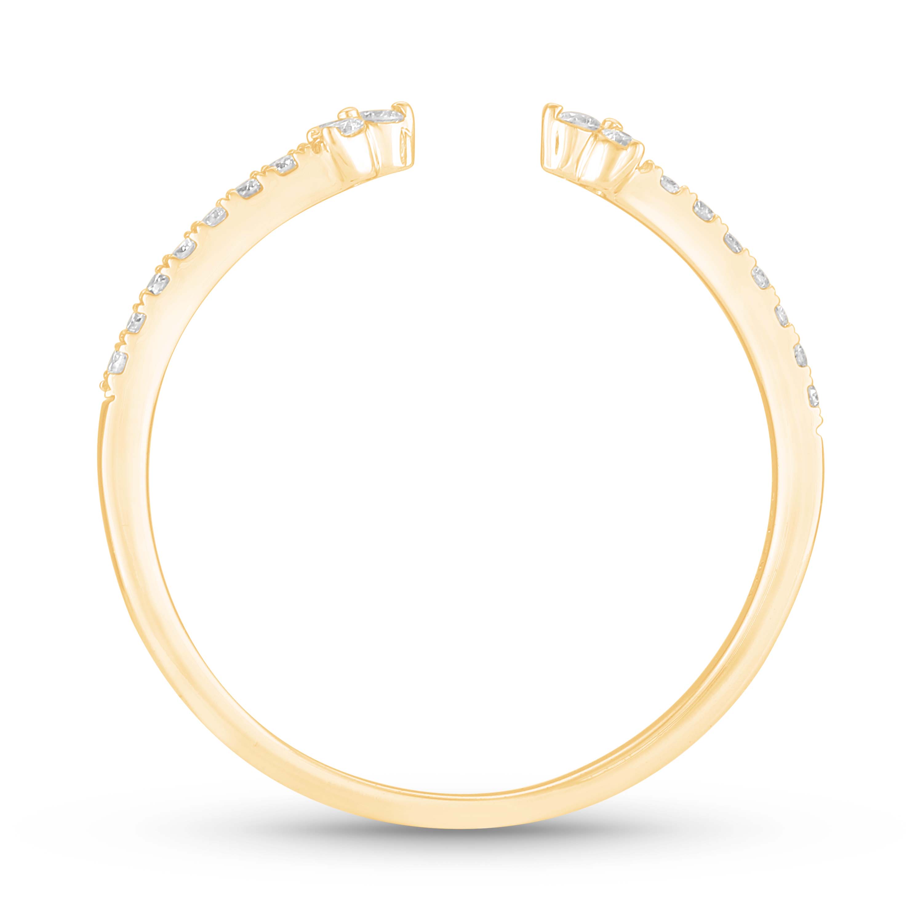 This elegant yellow gold cuff ring terminates in two sparkling diamond flower clusters, set against delicate pave-lined arcs. The open design beautifully symbolizes two separate, flourishing lives gently embracing, offering a continuous line of light and the pure promise of abundant, shared beauty.