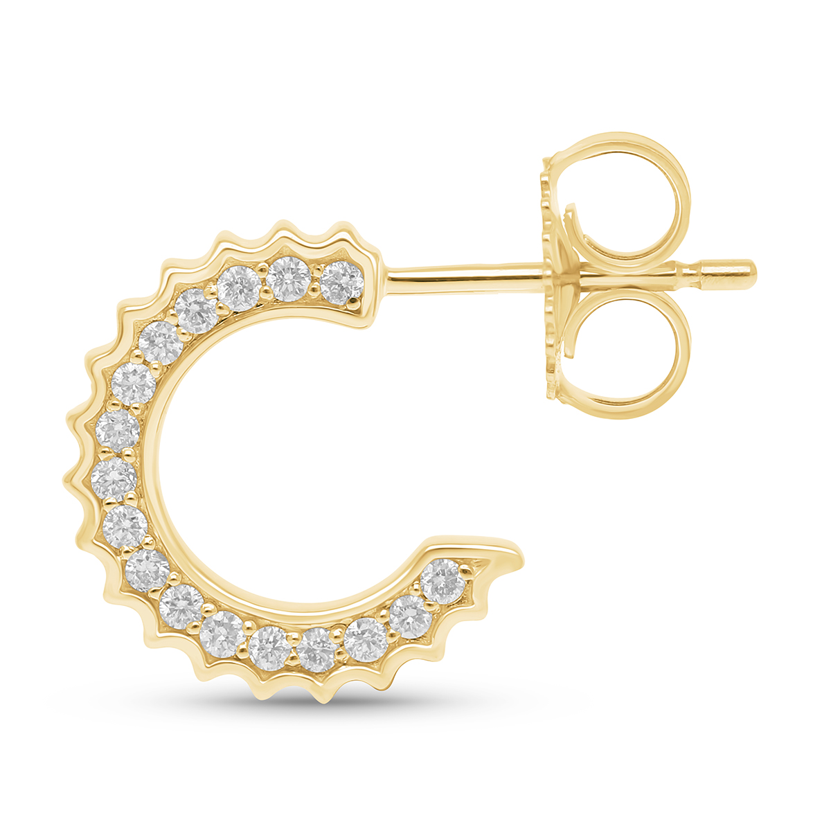Crafted in 14k gold, these ridged half hoops hold a secret sparkle of hidden diamonds peek from the side.