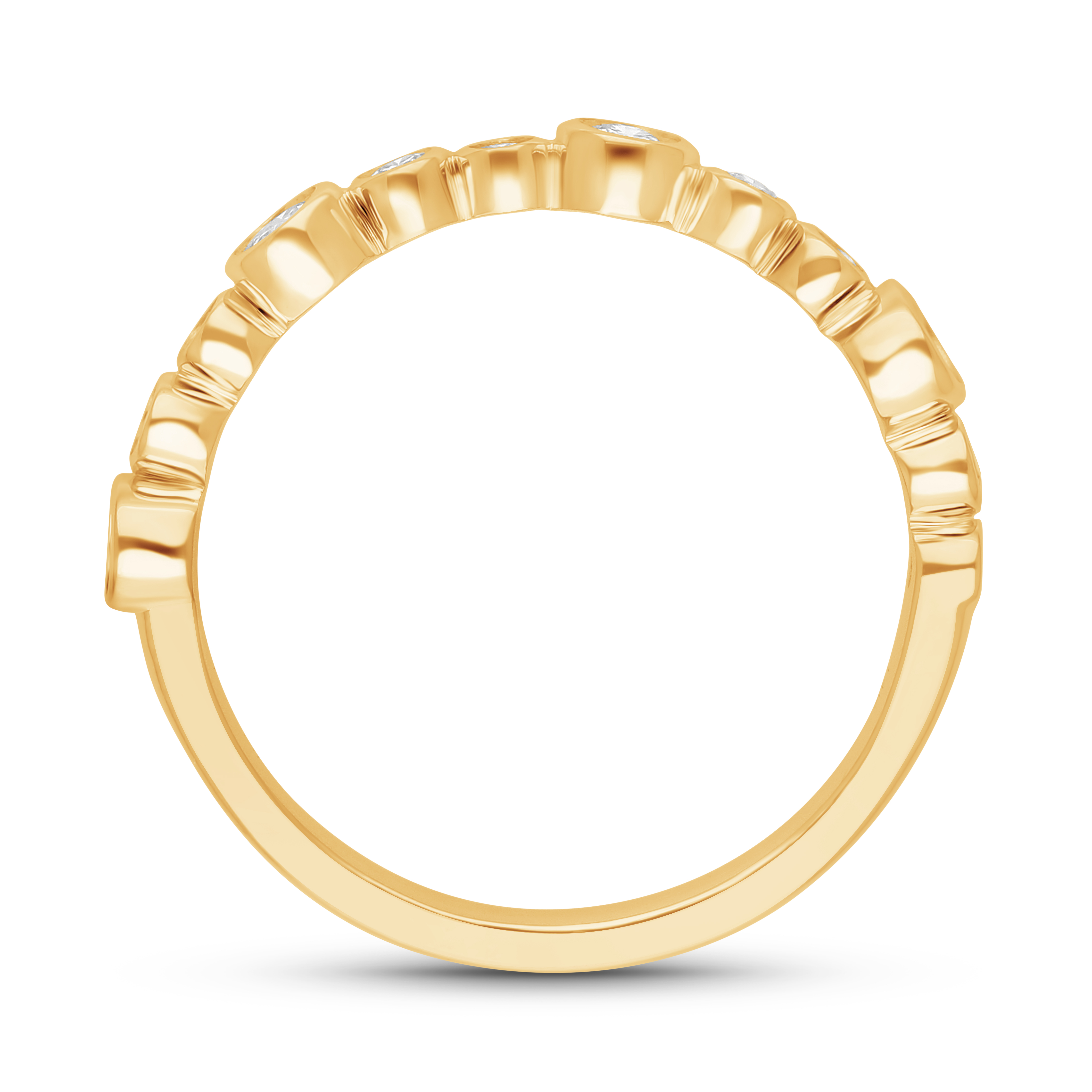 A mesmerizing, contemporary solitaire. This design features a striking emerald-cut diamond entirely framed by a sleek, high-polish bezel. Its clean, geometric shape gives the illusion of a bright, glowing disc.