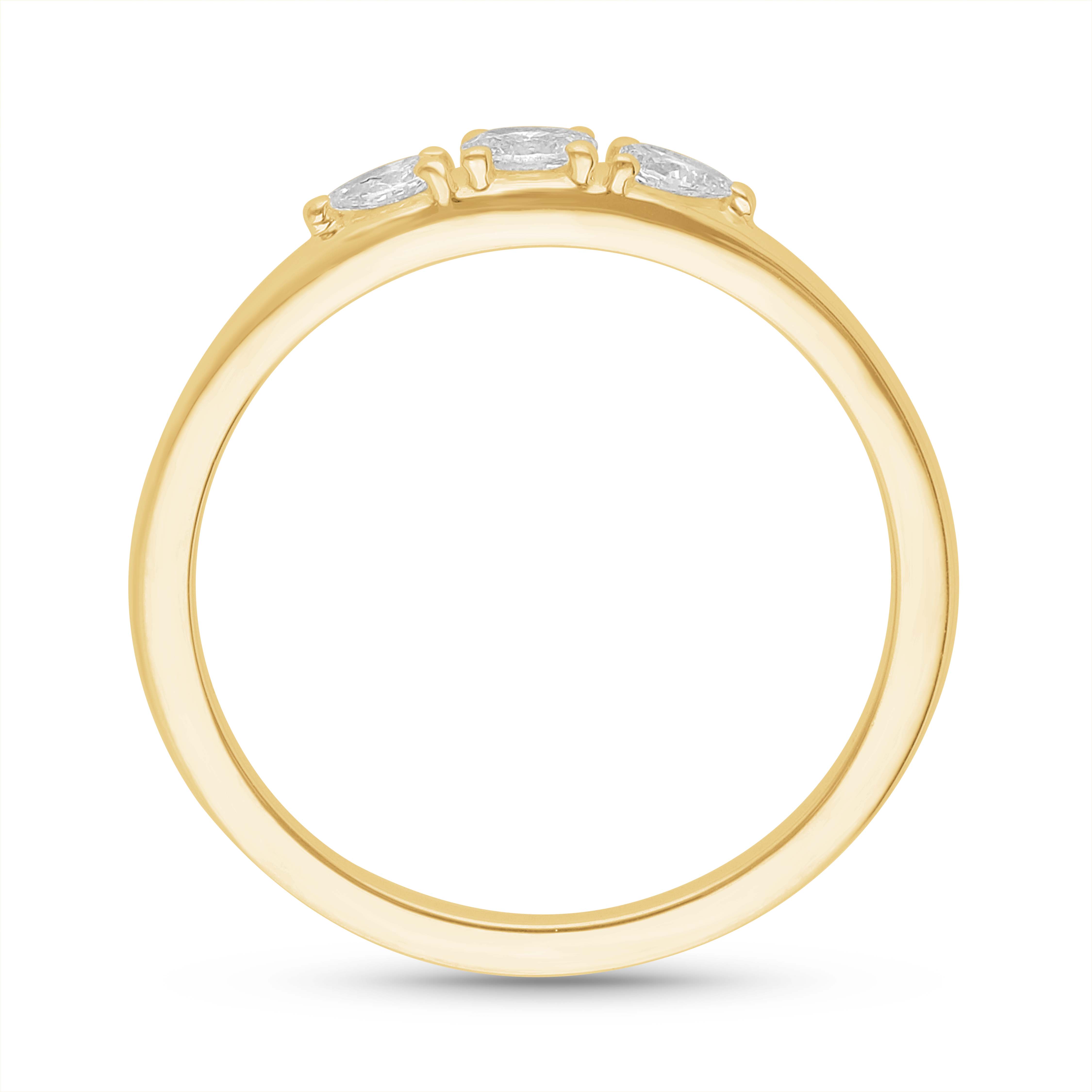 This stunning 14K Gold ring features a brilliant oval centerpiece flanked by luminous pear-cut diamonds. The elegant flow of the three stones symbolizes the beautiful, continuous sweep of a shared lifetime-past, present, and future glittering with profound, focused clarity and grace.