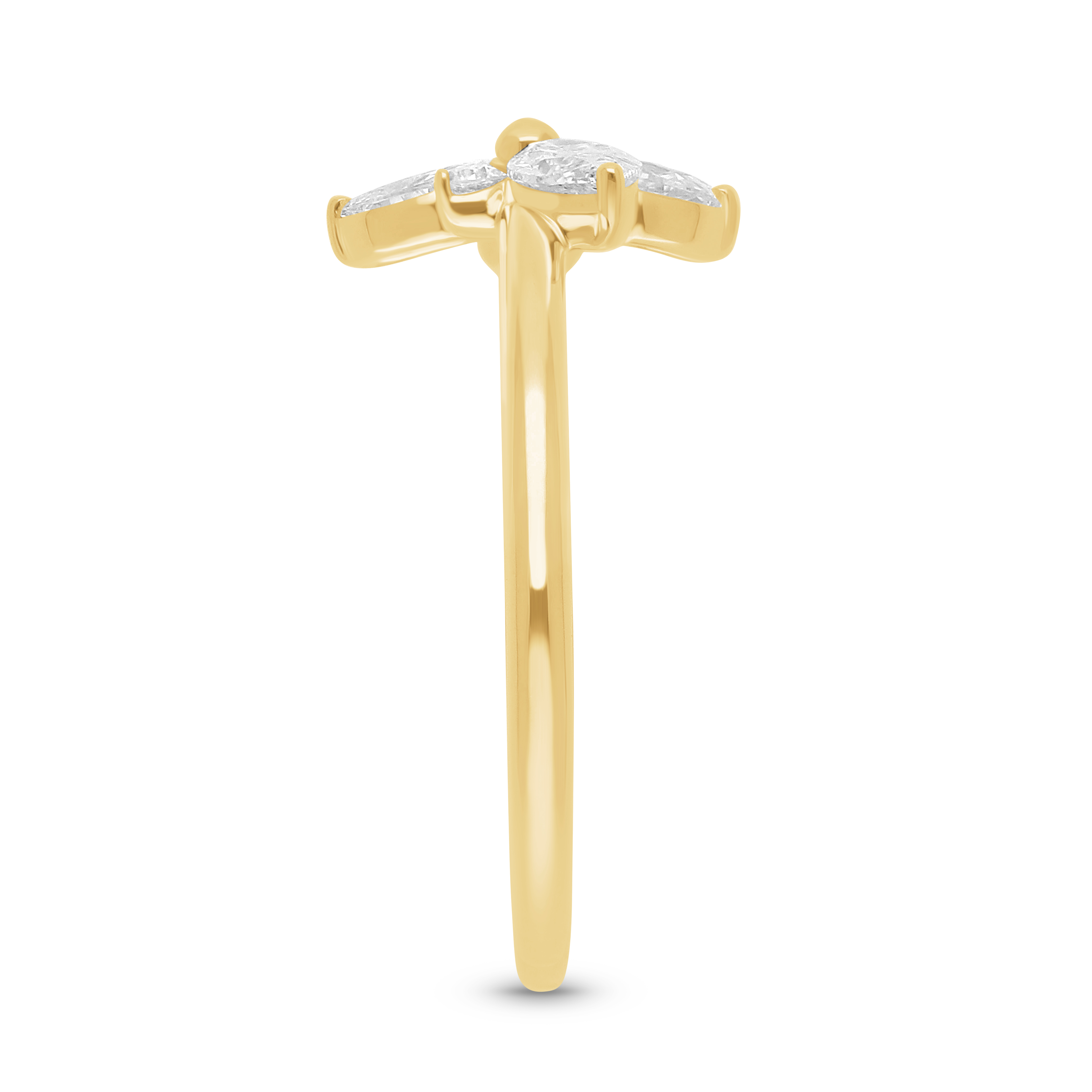 Crafted in 14K gold, this open ring features two brilliant, mirror-image marquise diamond clusters, each radiating pure, focused light. The dual sparkle symbolizes two separate lights that beautifully converge into one constellation of commitment, offering a bold and luminous statement.