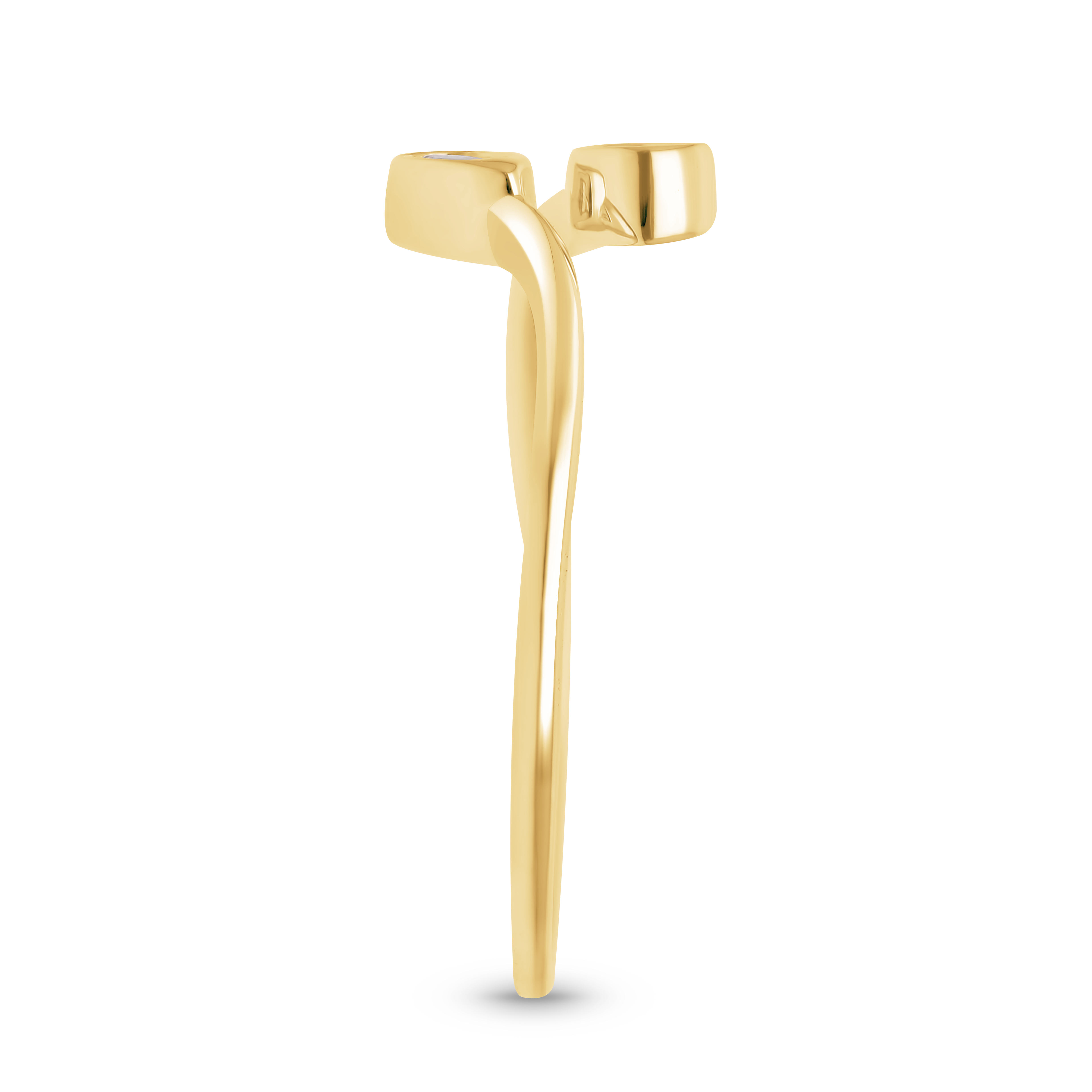 A unique, fluid bypass design featuring two brilliant bezel-set diamonds encased in teardrop frames. This stylish open ring offers a modern, chic look with subtle sparkle.