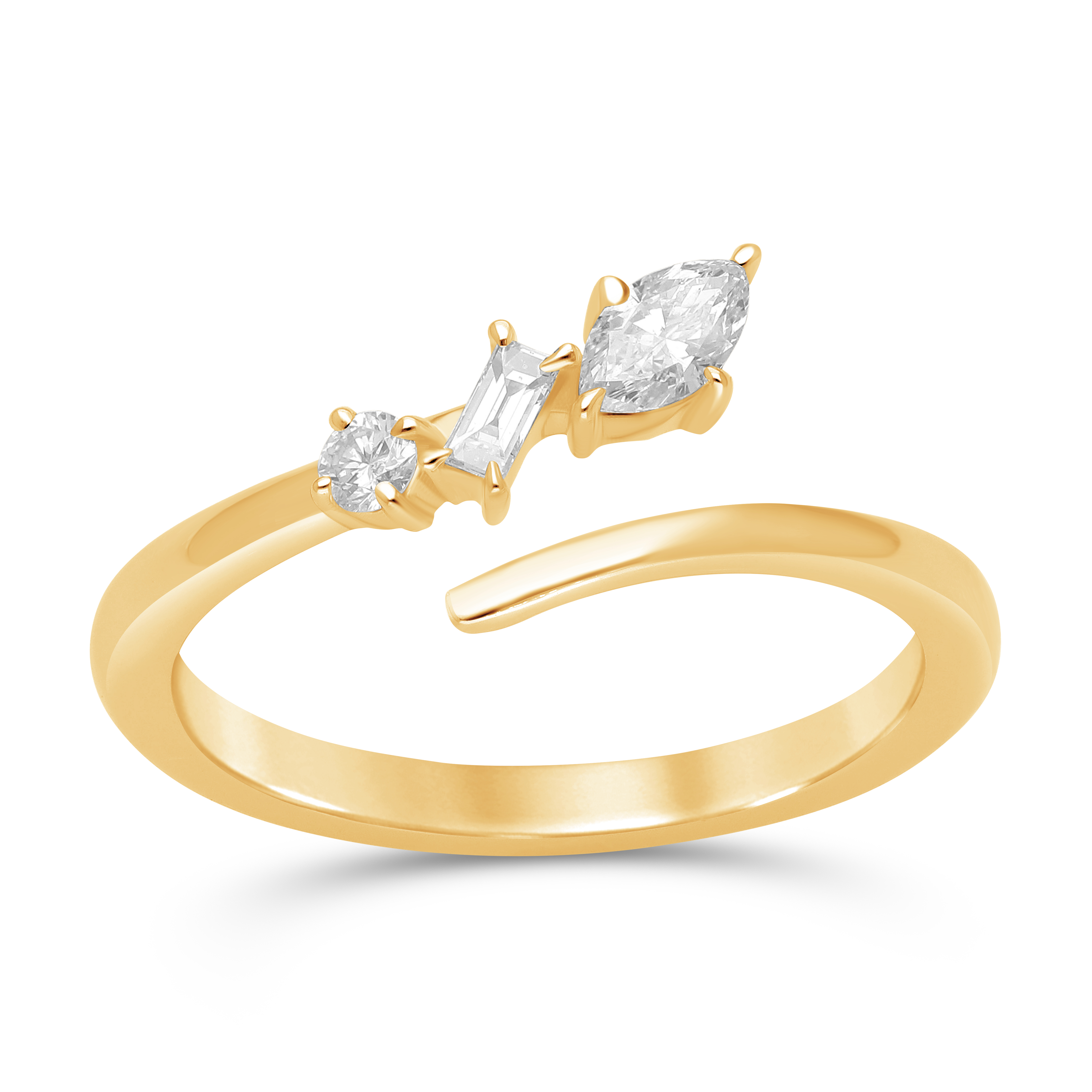 A poetic symbol of love’s eternal promise, this 14k gold ring wraps gracefully around the finger, featuring three luminous diamonds that capture the beauty, depth, and devotion of forever.